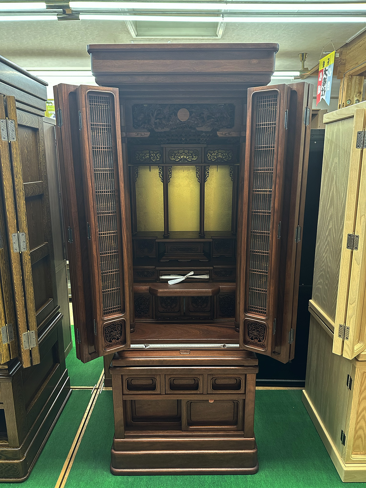 マットな質感が素材の良さを表しており、仏壇の重厚感を残してあります。