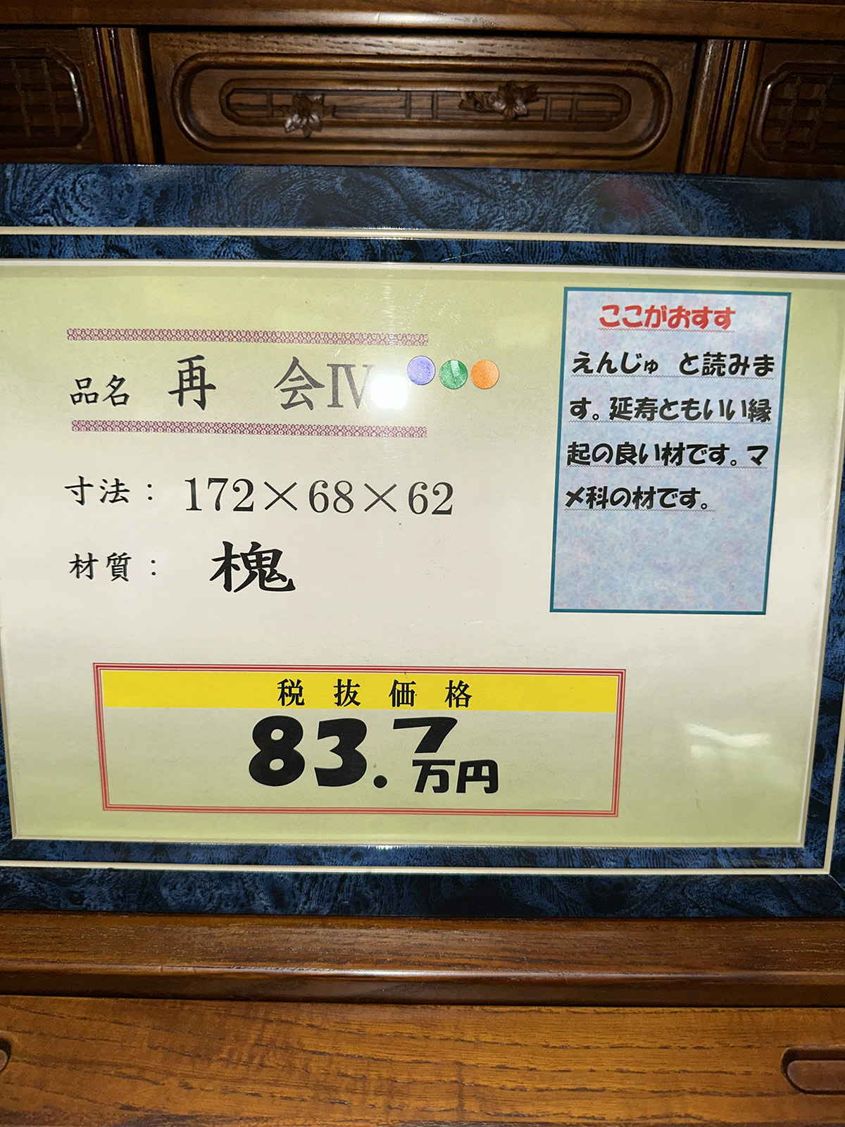 槐「えんじゅ」と読みます。延寿ともいい、マメ科の縁起の良い材です。